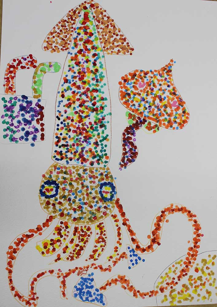 にとくん1年生。点々がんばりました。色彩がおもしろいですね。