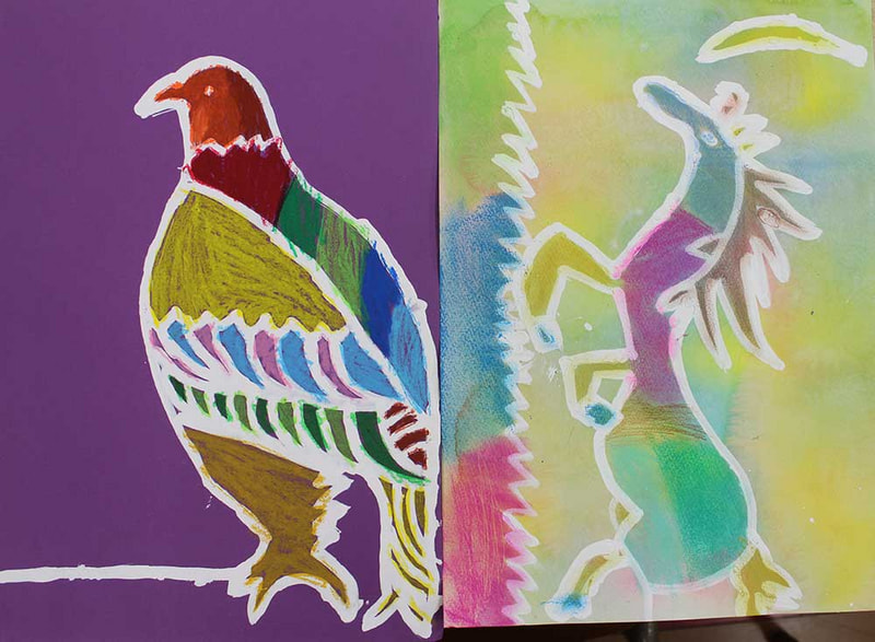 いちとくん1年生。よくかけてますね。右側は3原色で下地を作りました。